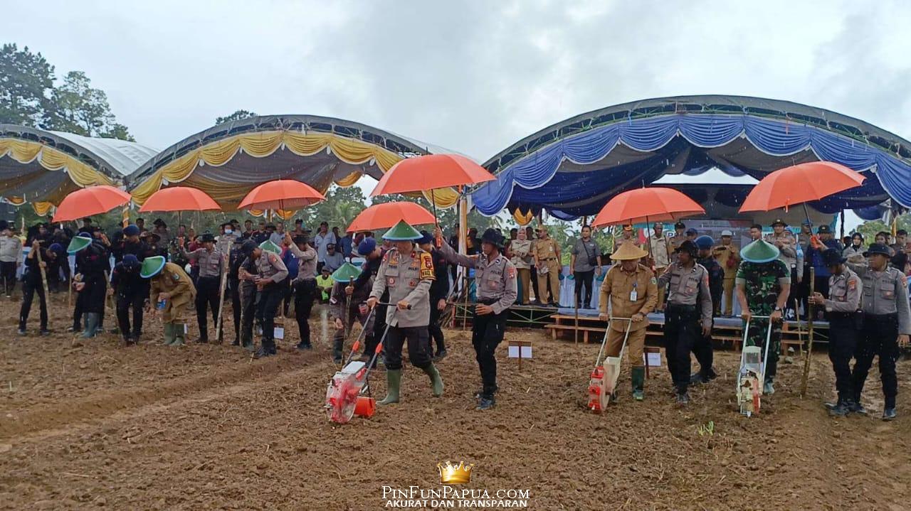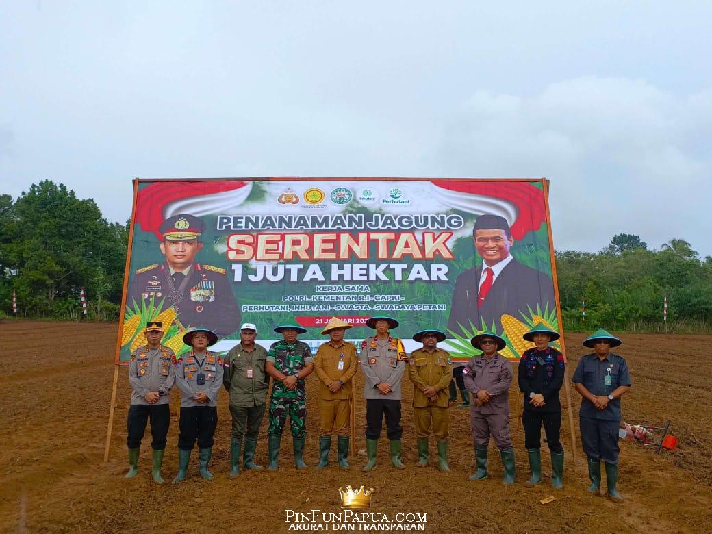 MANOKWARI, PinFunPapua.com – Kepolisian Daerah (Polda) Papua Barat bersama Forum Koordinasi Pimpinan Daerah (Forkopimda) Papua Barat melaksanakan penanaman jagung serentak yang dilakukan secara nasional. Program ini merupakan bagian dari upaya mendukung program swasembada pangan yang diusung Presiden Republik Indonesia, Prabowo Subianto.