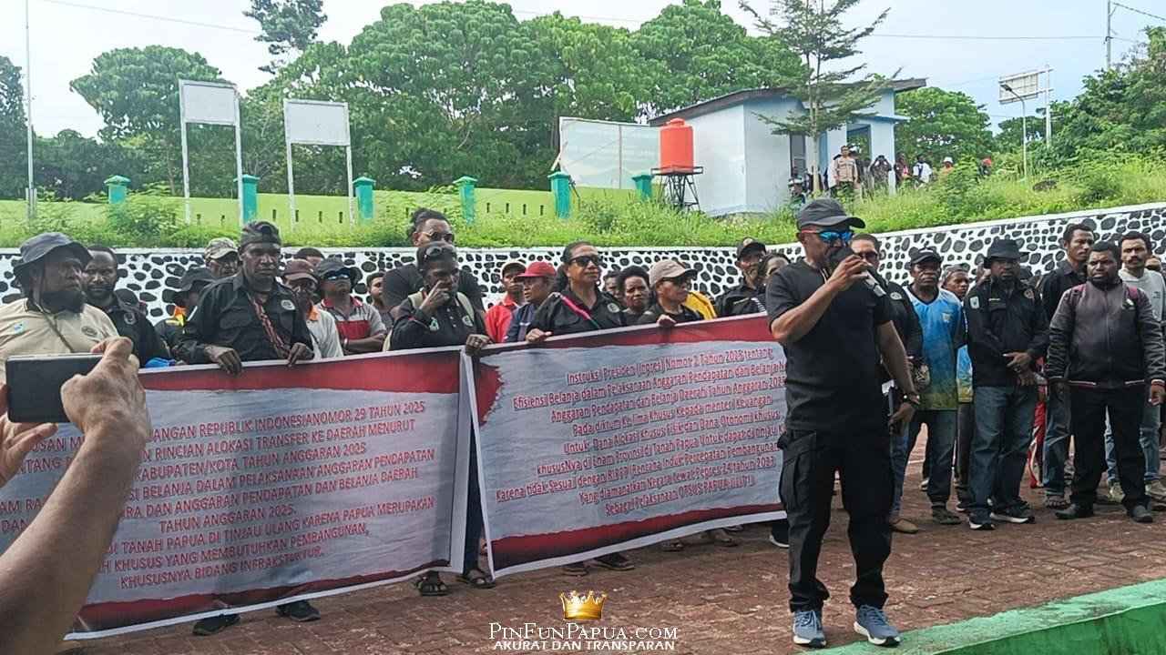 MANOKWARI, PinFunPapua.com – Perkumpulan Asosiasi Lokal Pengusaha Orang Asli Papua (PAL KOAP) Papua Barat menggelar aksi unjuk rasa di depan Kantor Dewan Perwakilan Rakyat Papua Barat (DPRPB), Senin (24/2/2025). Mereka mendesak DPR Papua Barat segera membentuk panitia khusus (pansus) untuk menindaklanjuti dampak efisiensi anggaran yang diatur dalam Instruksi Presiden (Inpres) Nomor 1 Tahun 2021.