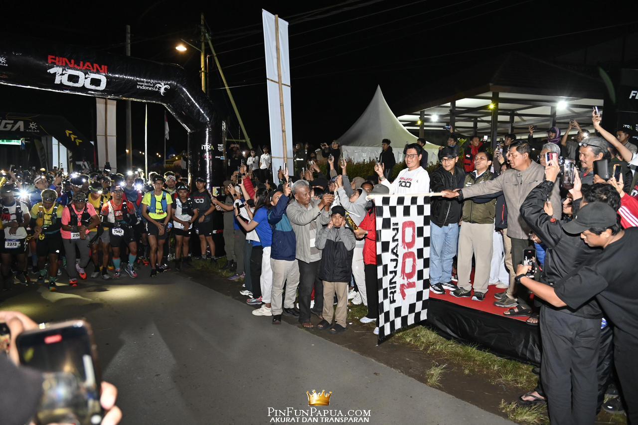 MATARAM, PinFunPapua.com – Kepala Kepolisian Daerah Nusa Tenggara Barat (Kapolda NTB), Irjen Pol. Hadi Gunawan secara resmi melepas peserta ajang lari lintas alam internasional Rinjani 100 kategori 36 kilometer yang dimulai dari pelataran Nusantara Hotel, Sembalun, Minggu (18/5/2025) dini hari.