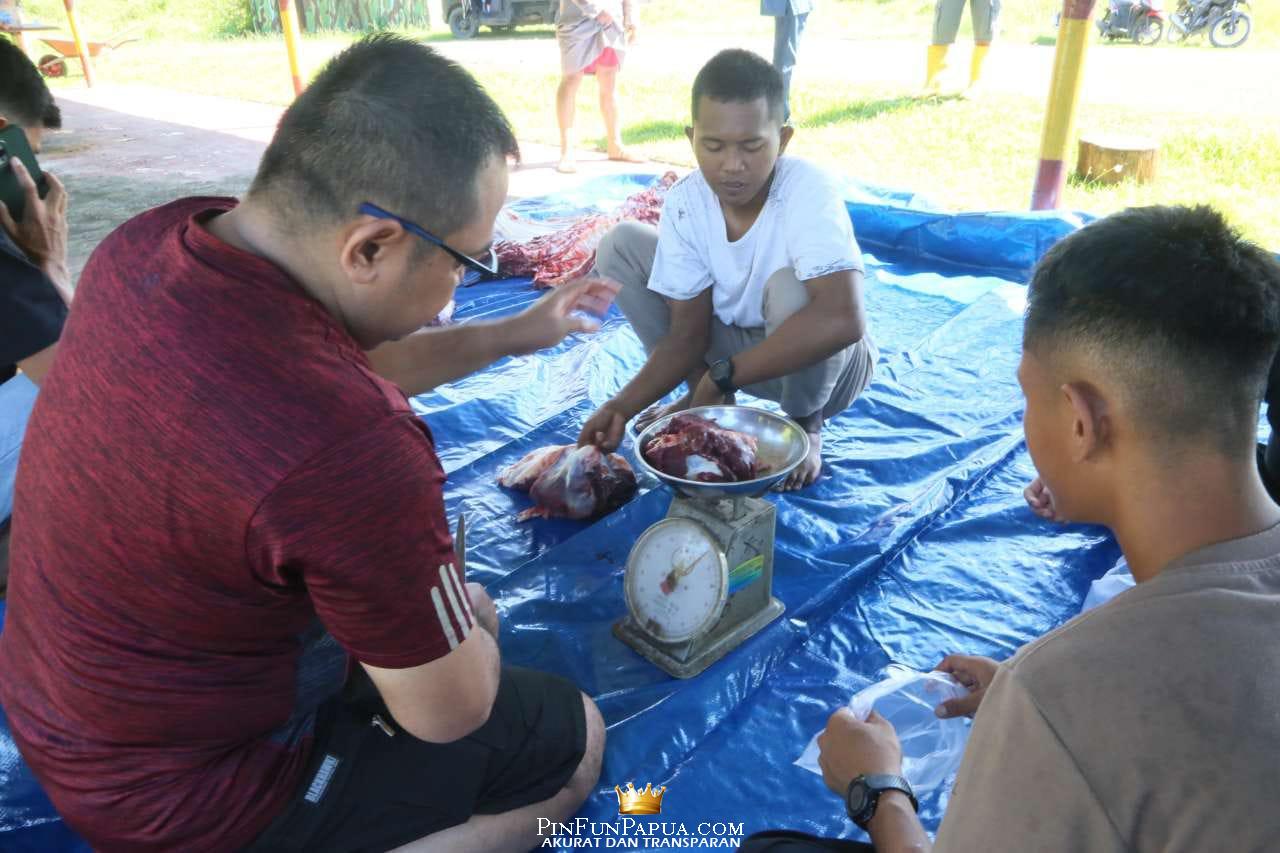 Adapun jumlah hewan kurban yang disembelih terdiri atas tiga ekor sapi dan satu ekor kambing. Daging kurban tersebut kemudian didistribusikan kepada masyarakat yang membutuhkan, termasuk warga sekitar Mapolda, kaum dhuafa, serta personel Polda Papua Barat, sebagai bentuk kepedulian institusi terhadap masyarakat dan anggotanya.