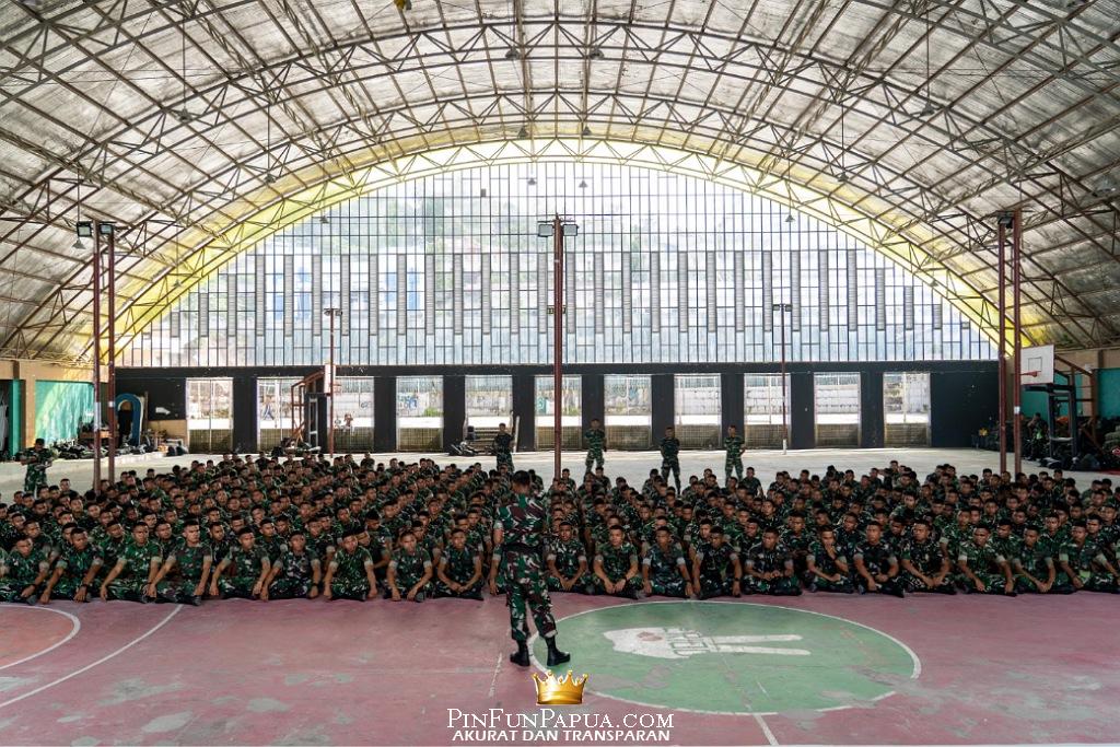 FAKFAK, PinFunPapua.com – Komandan Korem 182/Jazira Onim, Kolonel Inf Irwan Budiana, S.E., M.M., M.Han., memberikan pengarahan kepada 470 prajurit Yonif Teritorial Pembangunan (TP) 808/Mbaham Matta dalam kunjungan kerja ke Kabupaten Fakfak, Papua Barat, Kamis (14/8/2025). Kegiatan berlangsung di Gedung Olahraga KONI Fakfak dan turut dihadiri Danyonif TP 808/MM, Mayor Inf Ahmad Nasudin, M.Tr (Han), bersama jajaran perwira.