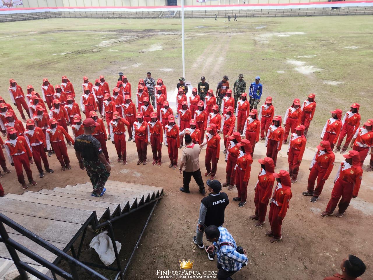 Bupati Fakfak, Samaun Dahlan, hadir memantau langsung latihan intensif Pasukan Pengibar Bendera Pusaka (Paskibra) menjelang peringatan HUT ke-80 Kemerdekaan Republik Indonesia (FOTO : Risman Bauw)