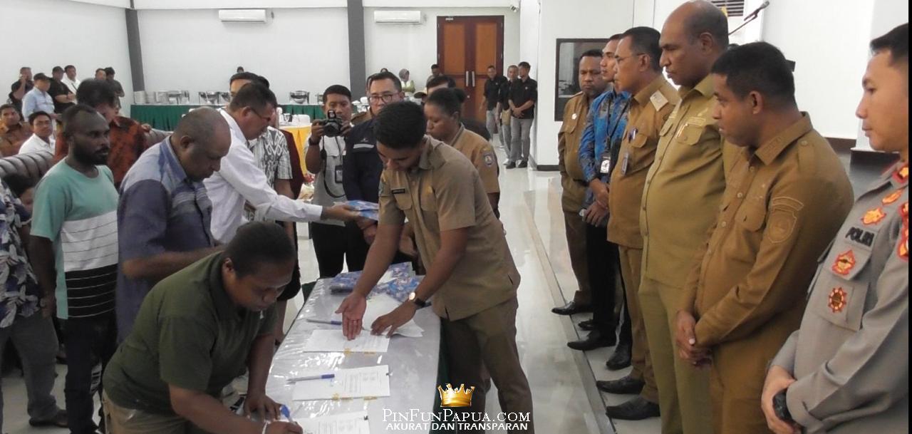 Wakil Gubernur Papua Barat, Mohamad Lakotani, menyerahkan kompensasi pemanfaatan tanah ulayat masyarakat hukum adat Suku Sumuri oleh SKK Migas dalam rangka investasi Genting Oil Kasuri Pte. Ltd (FOTO:ISTIMEWA)