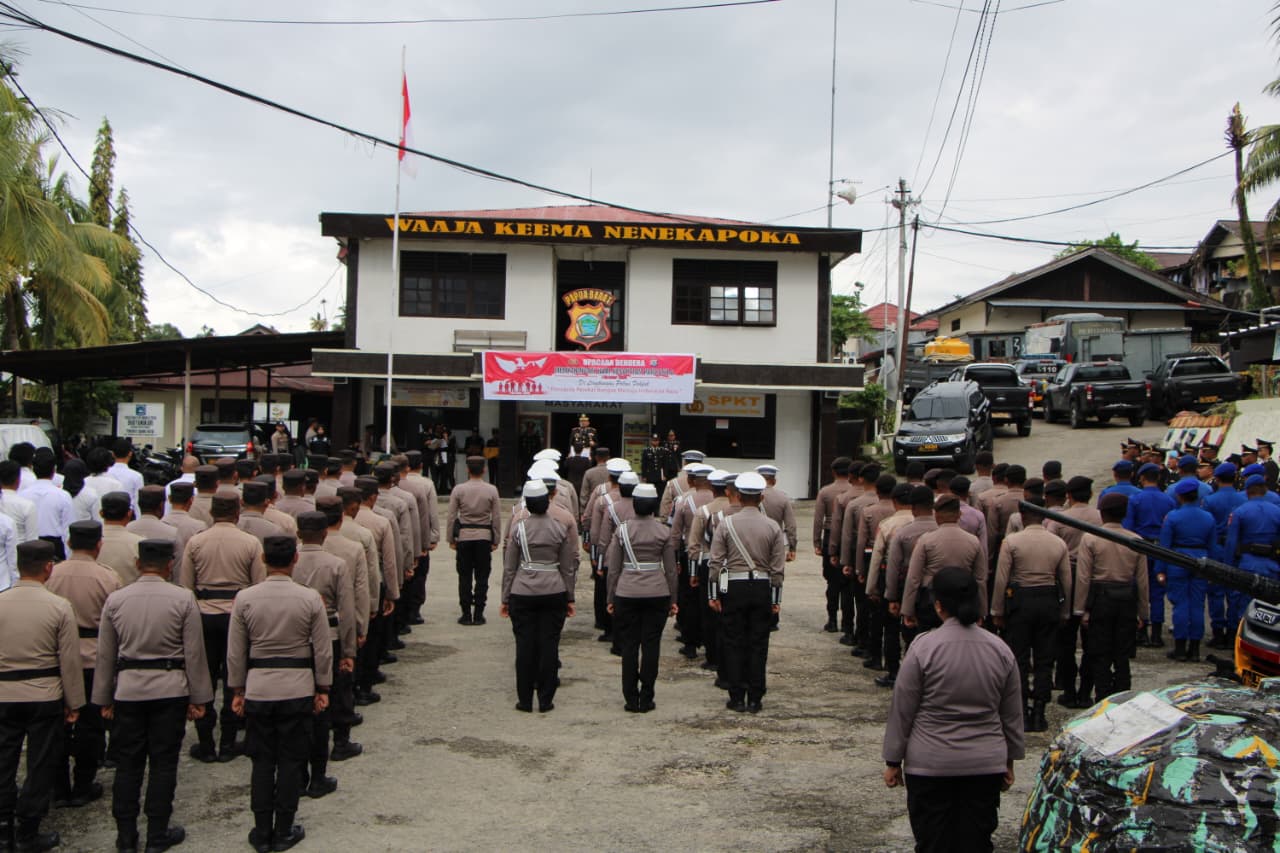 Kapolres Fakfak, AKBP Hendriyana, S.E., M.H., bertindak sebagai Inspektur Upacara. Adapun AKP Wisran Litiloly, S.H., M.H., menjadi Perwira Upacara dan IPDA Damin Adi sebagai Komandan Upacara. Seluruh unsur satuan di lingkungan Polres Fakfak turut ambil bagian, termasuk Samapta, Polair, Lalu Lintas, staf Polres, gabungan Polsek, serta Intelkam/Reskrim.