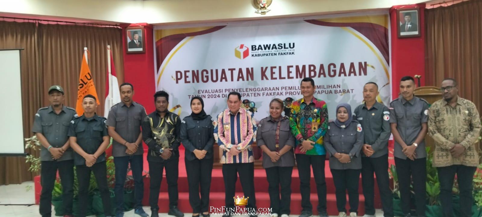 FAKFAK, PinFunPapua.com – Badan Pengawas Pemilihan Umum (Bawaslu) Kabupaten Fakfak menggelar kegiatan Penguatan Kelembagaan dan Evaluasi Penyelenggaraan Pemilu dan Pemilihan Tahun 2024, Kamis (2/10/2025). Kegiatan ini menghadirkan lima narasumber dan bertujuan memperkuat lembaga pengawas pemilu sekaligus merefleksikan perjalanan demokrasi di Fakfak.