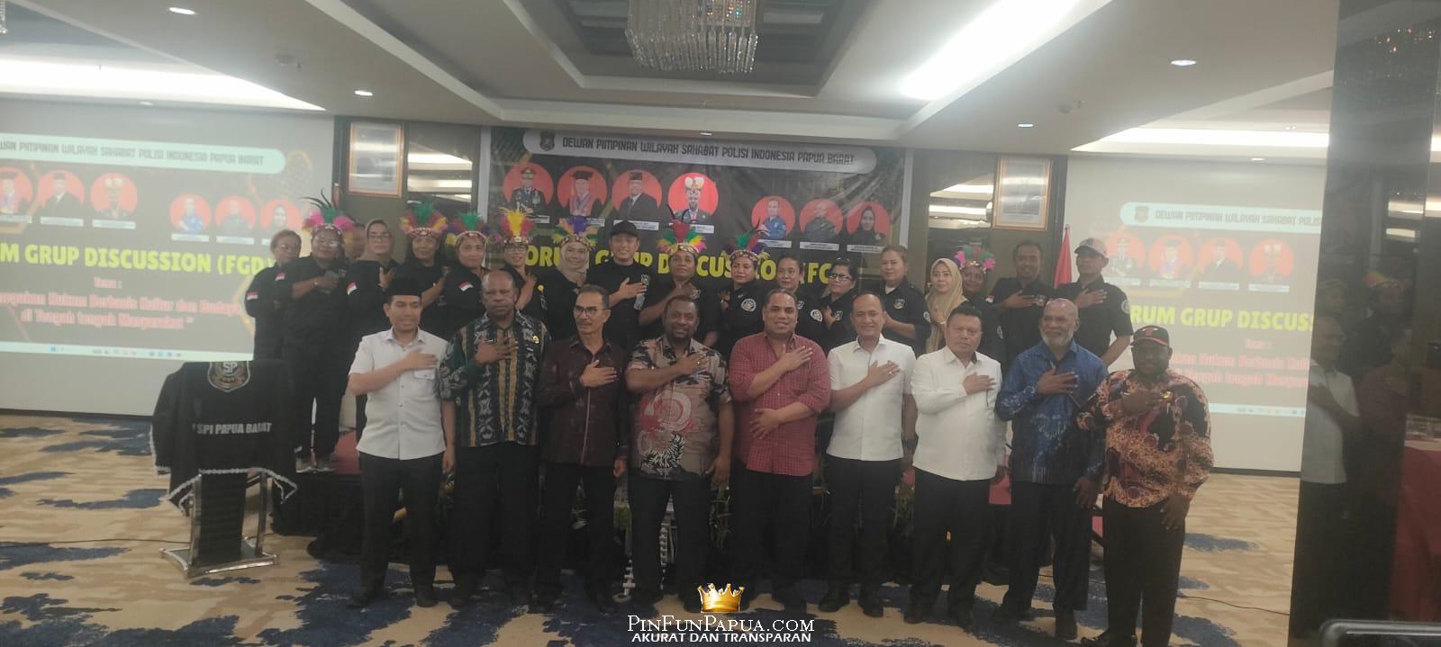 MANOKWARI, PinFunPapua.com – Sahabat Polisi Indonesia (SPI) Papua Barat menggelar Forum Group Discussion (FGD) mengenai penegakan hukum berbasis kultur dan budaya di tengah masyarakat di Manokwari, Papua Barat. Kegiatan ini menghadirkan sejumlah narasumber, antara lain Ketua Majelis Rakyat Papua Barat (MRPB) Judson Waprak, akademisi dari Universitas Ceritas Indonesia, Kepala Biro Hukum, serta perwakilan Polda Papua Barat, termasuk Direktorat Reserse Kriminal Umum (Direskrimum).
