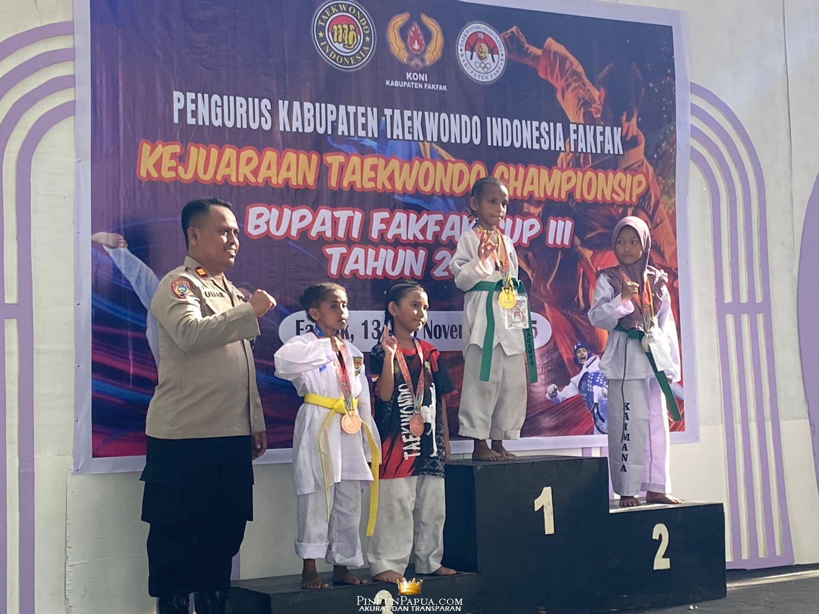 Fakfak, PinFunPapua.com – Dojang Bhayangkara Taekwondo Club (BTC) Polres Fakfak kembali menorehkan prestasi membanggakan pada Kejuaraan Taekwondo Bupati Cup Fakfak III Tahun 2025. Mengirimkan 45 atlet terbaiknya, BTC berhasil meraih Juara 2 Umum dengan total 44 medali yang terdiri dari 23 emas, 13 perak, dan 8 perunggu pada Selasa (18/11).