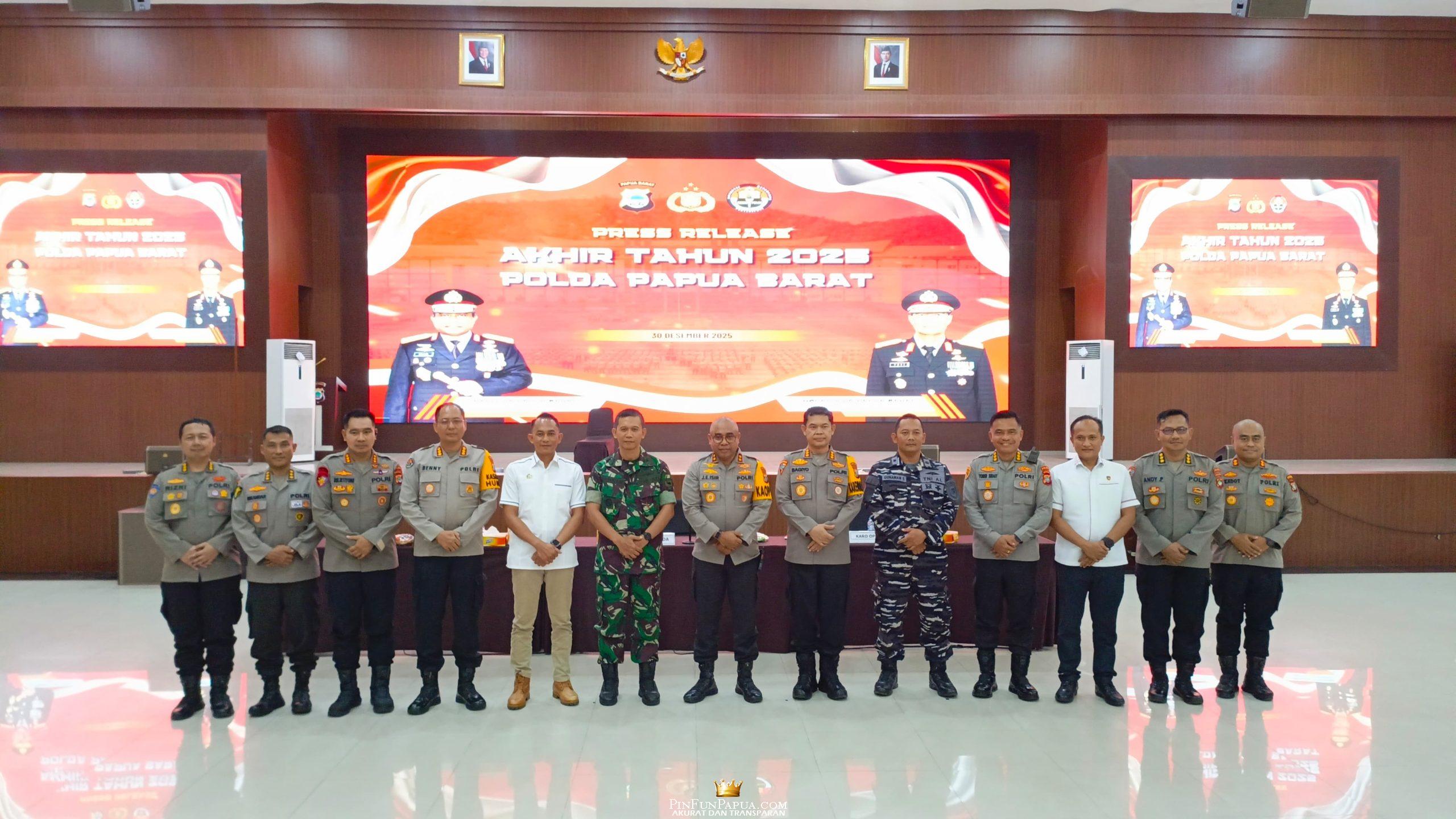 MANOKWARI, PinFunPapua.com – Kepala Kepolisian Daerah (Kapolda) Papua Barat, Irjen Pol Jhonny Edison Isir, S.I.K., M.T.C.P., menegaskan komitmen kuat Polda Papua Barat dalam memberantas segala bentuk praktik perjudian, baik yang beroperasi secara konvensional (darat) maupun berbasis digital atau judi online. Penegasan tersebut disampaikan dalam kegiatan Press Release Akhir Tahun Polda Papua Barat yang digelar di Gedung Arfak Convention Hall, Markas Polda Papua Barat, Selasa (30/12/2025), dan dihadiri unsur Forum Koordinasi Pimpinan Daerah (Forkopimda) Provinsi Papua Barat.