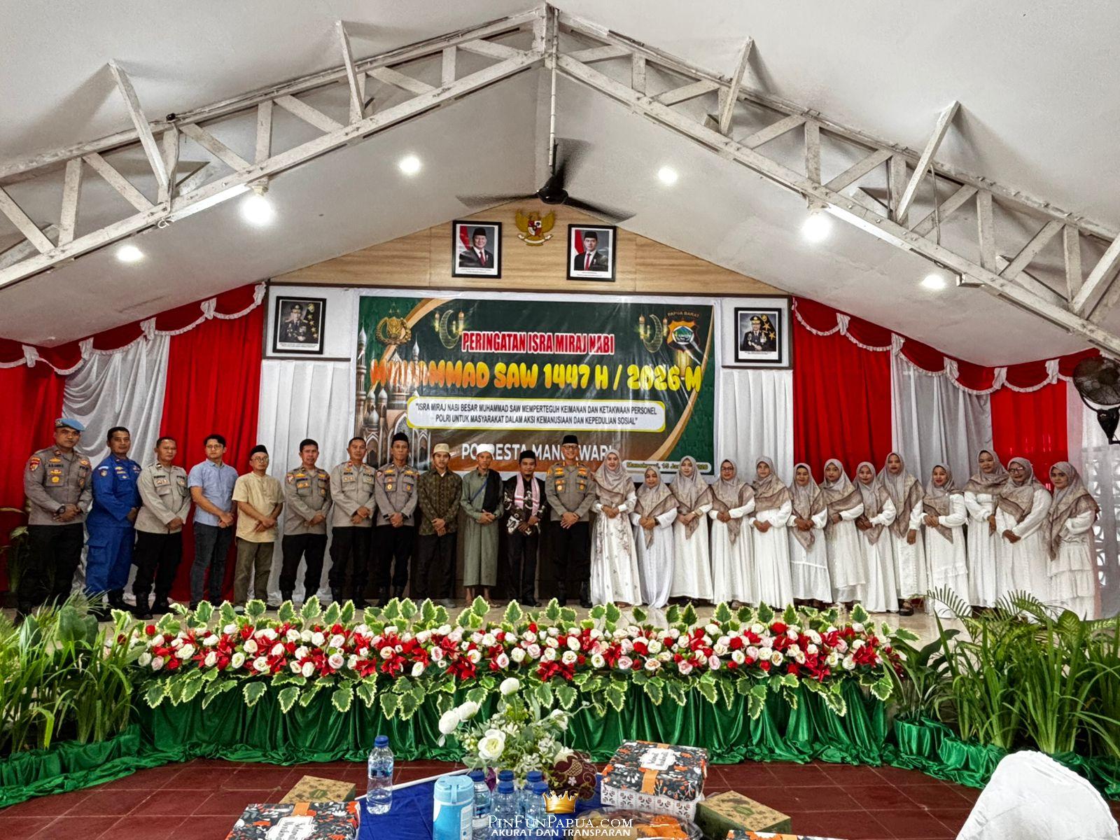 MANOKWARI, PinFunPapua.com – Polresta Manokwari menggelar peringatan Isra Mi’raj Nabi Muhammad SAW Tahun 1447 Hijriah/2026 Masehi yang berlangsung khidmat, bertempat di Aula Polresta Manokwari pada Kamis (15/01/2026) pagi.