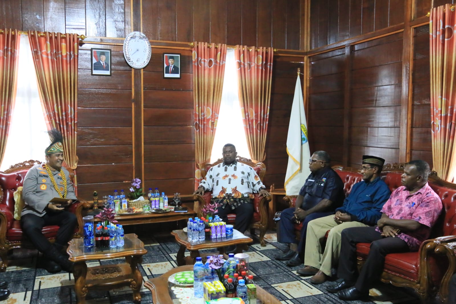 Kedatangan Kapolda Papua Barat disambut langsung oleh Ketua MRP Papua Barat bersama jajaran pimpinan lembaga tersebut, di antaranya Wakil Ketua I, Ketua Pokja Adat, Ketua Pokja Perempuan, Ketua Pokja Agama, serta Sekretaris MRP Papua Barat. Pertemuan berlangsung dalam suasana hangat dan penuh kekeluargaan.