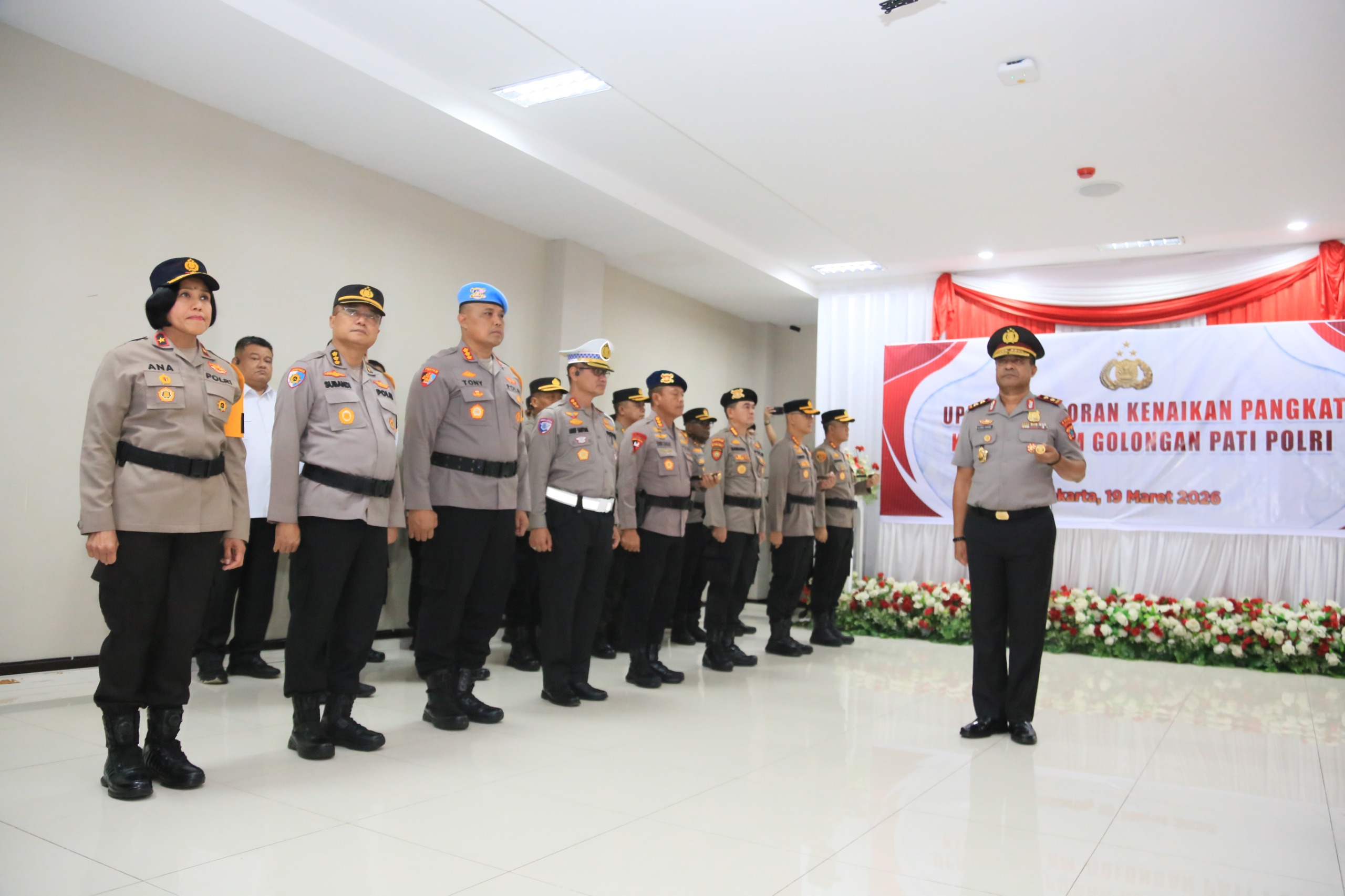MANOKWARI, PinFunPapua.com – Kepolisian Daerah Papua Barat menggelar Upacara Korp Raport Kenaikan Pangkat ke dalam golongan Perwira Tinggi (Pati) Polri yang dilaksanakan secara daring di Ruang Vicon Lantai 2 Polda Papua Barat, Kamis (19/3/2026). Upacara tersebut menjadi momen istimewa dengan kenaikan pangkat Kapolda Papua Barat dari Brigadir Jenderal Polisi (Brigjen Pol) menjadi Inspektur Jenderal Polisi (Irjen Pol).